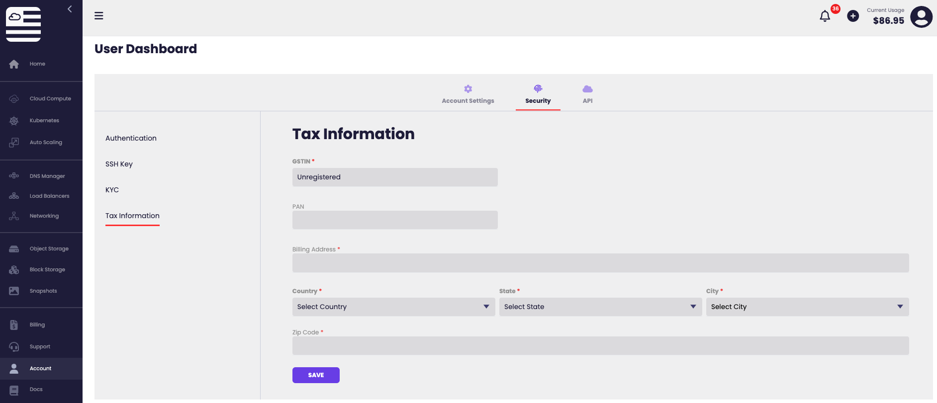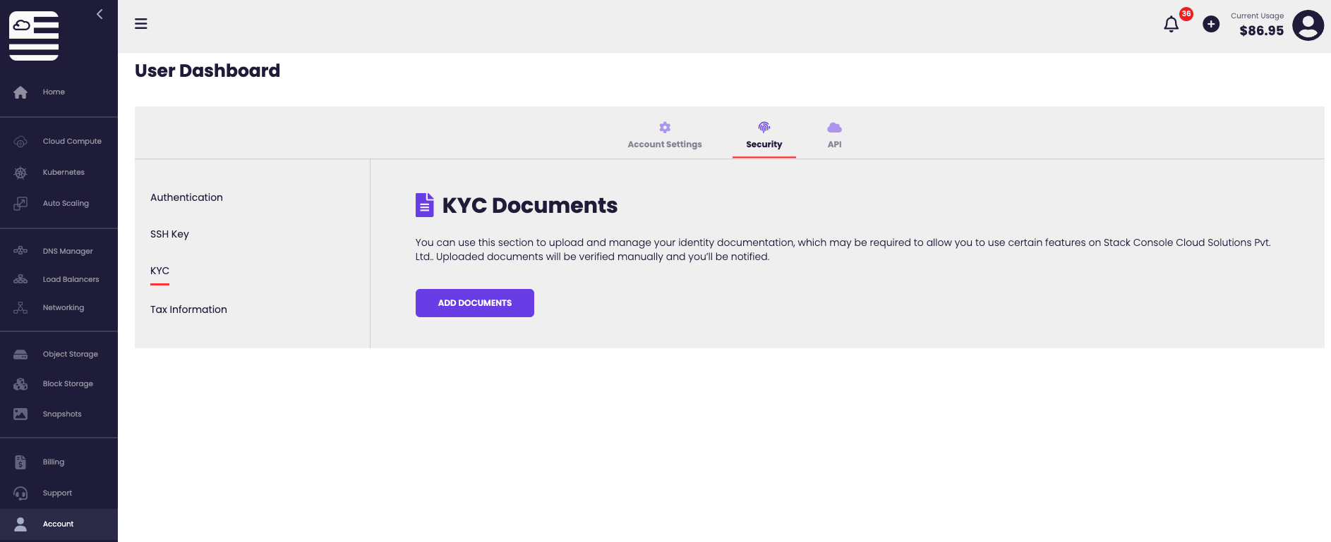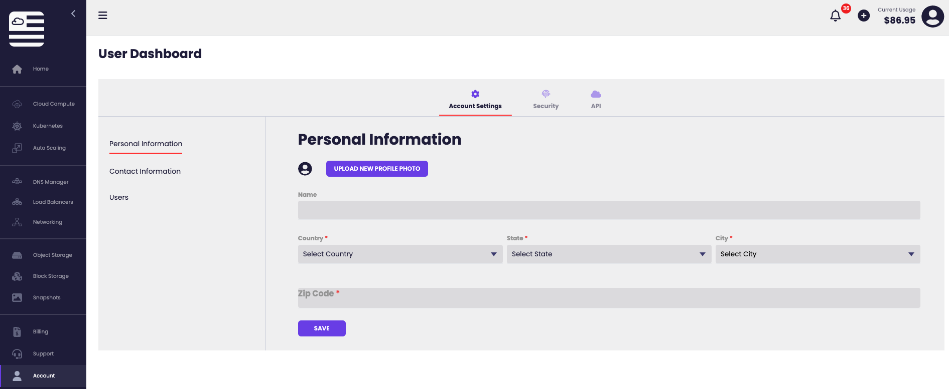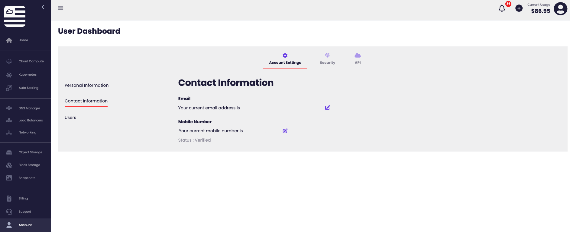 Under Account you will be able to manage your American Cloud account which is your gateway to creating and using American Cloud’s products and services.
