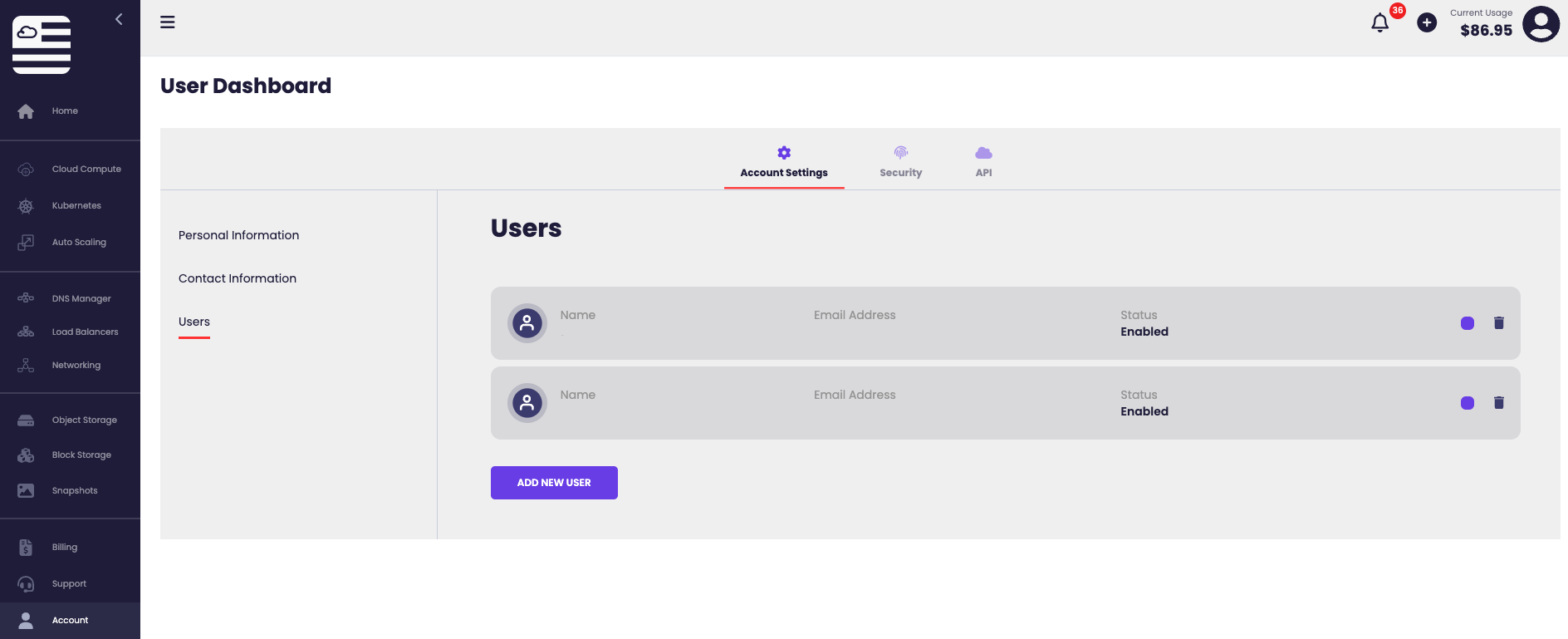 This is where users can be managed and added to access the American Cloud account.