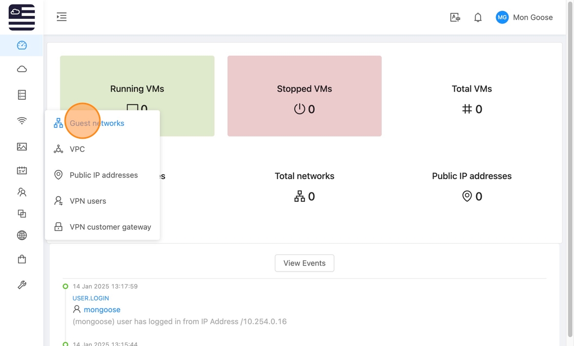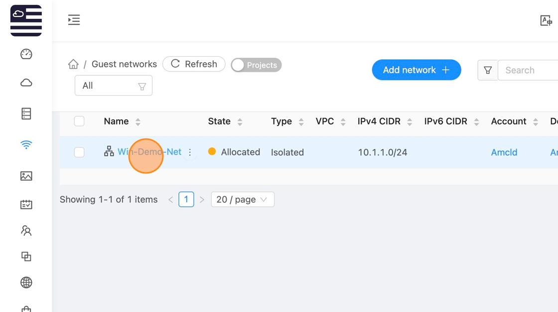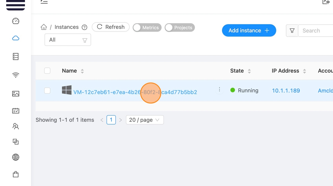 - Click [[cloud/instance]] icon from the left navigation bar and select [[instances]].