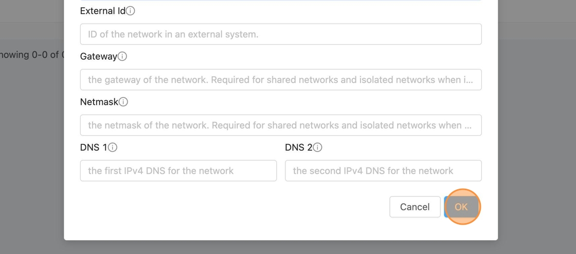 - The remainder of the boxes can be left blank unless building the network for a VPC. Select 'OK'.