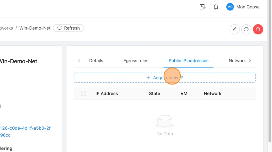 - To begin we'll be missing an IP for our network. Following the first build ACE will assign an IP to the machine and enable that IP as the source NAT.
