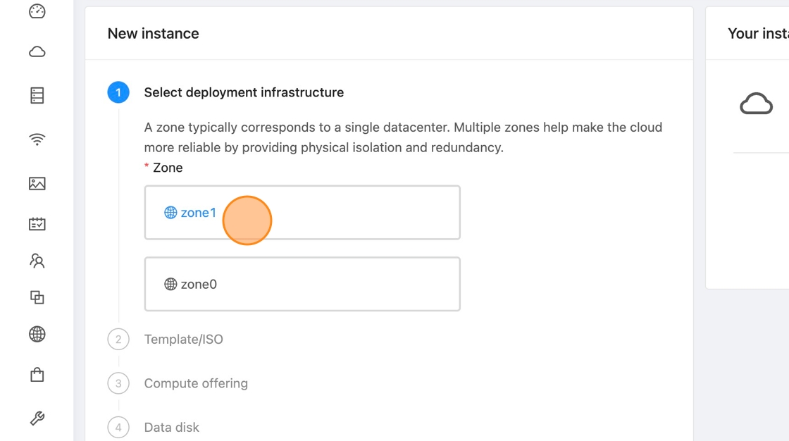 - Select the zone the VM should reside in. The zone should mirror the zone of the network to build on.