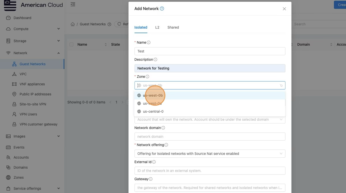 Select "Offering for Isolated networks with Source Nat service enabled"