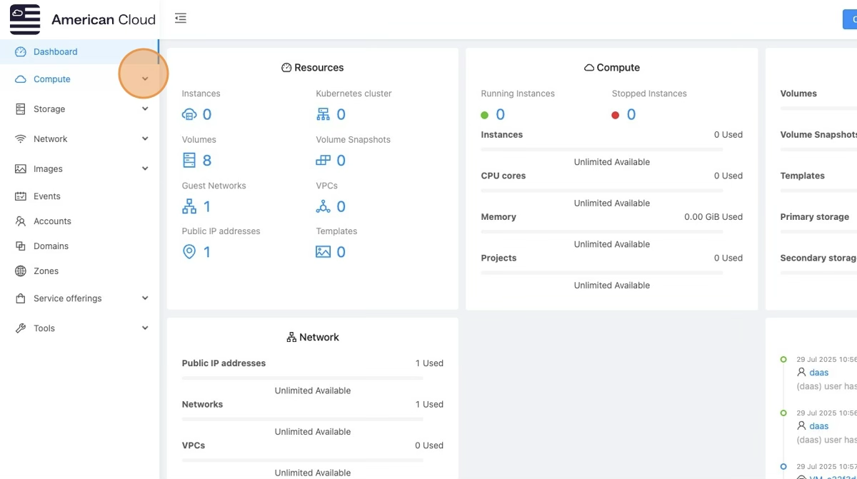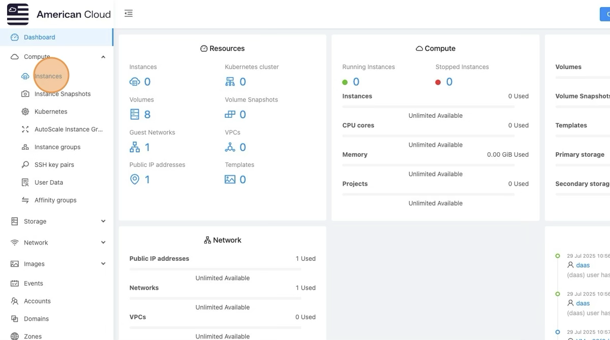 After connecting to the ACE VPN Navigate to https://gateway00.americancloud.com:8443/client/#/dashboard.
