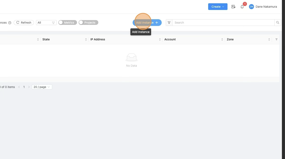 From the ACE Dashboard panel choose Compute > Instances, click Add Instance