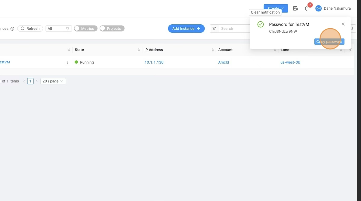 After the server is deployed, you will see the password show up in the panel if the password set has been configured in the chosen Template. Make sure to the save the password in a password manager of your choice.