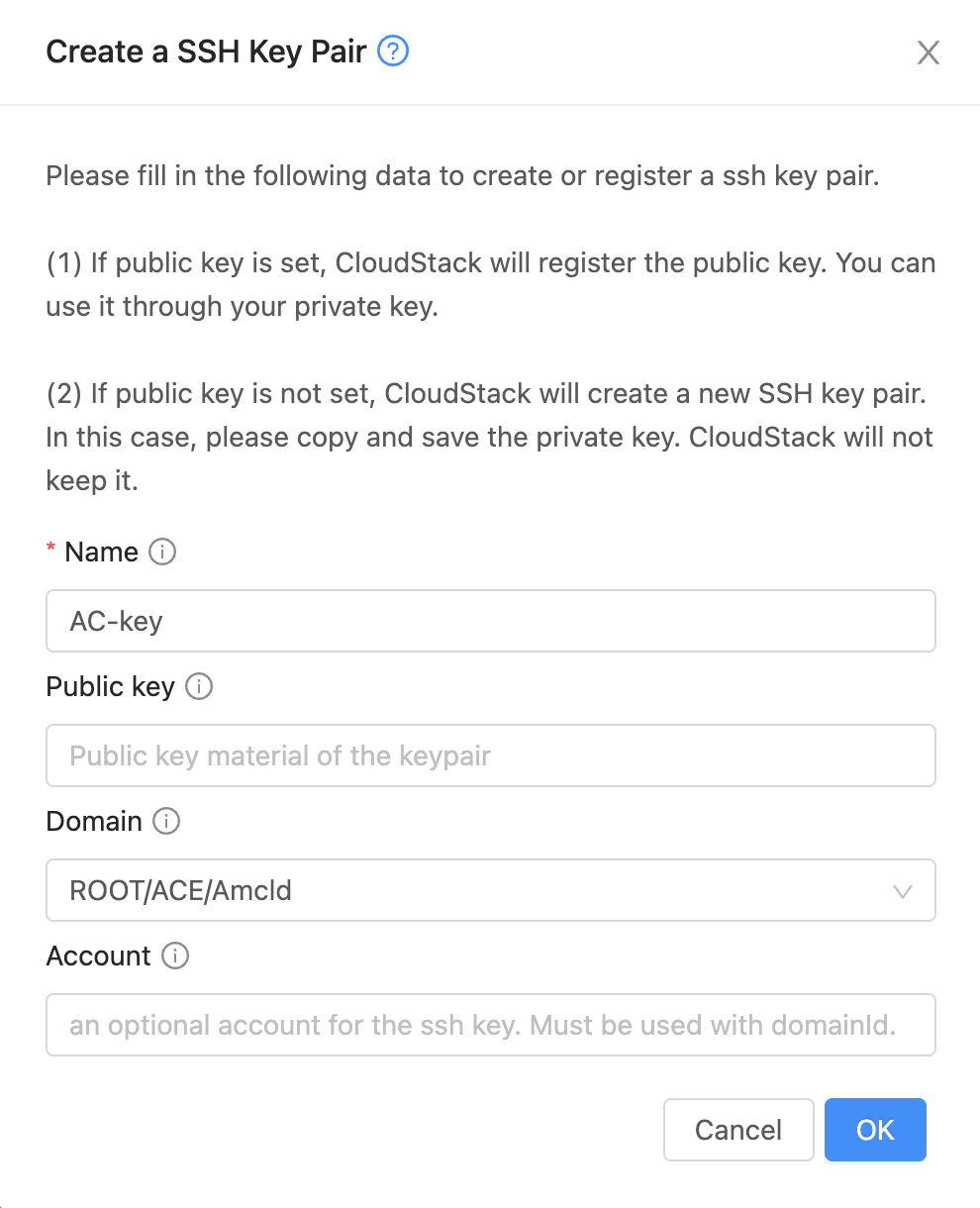 - Fill in the required information. (The account field is optional and not required for American Cloud purposes.)