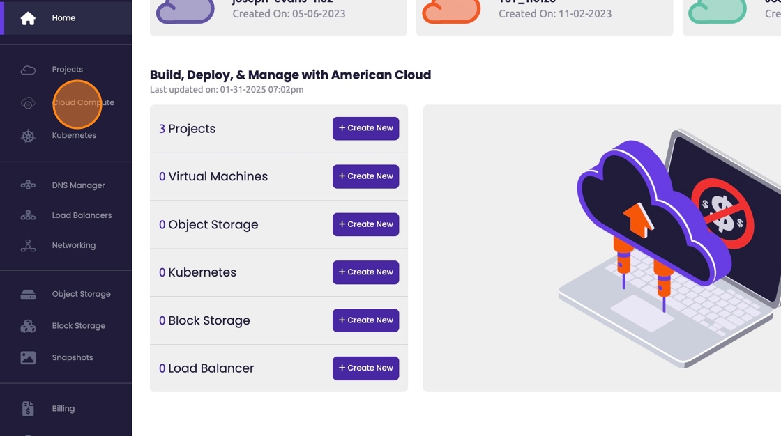 - Navigate to https://app.americancloud.com/login