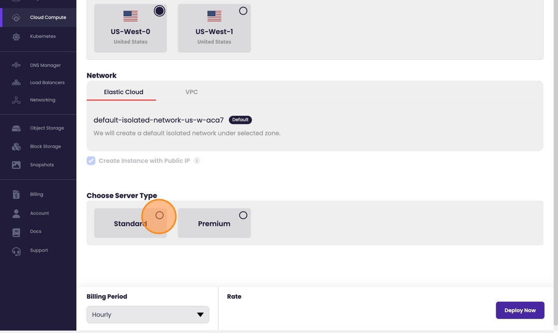 5.) Select between Standard or Premium in "US-West-0" and Standard in "US-West-0"