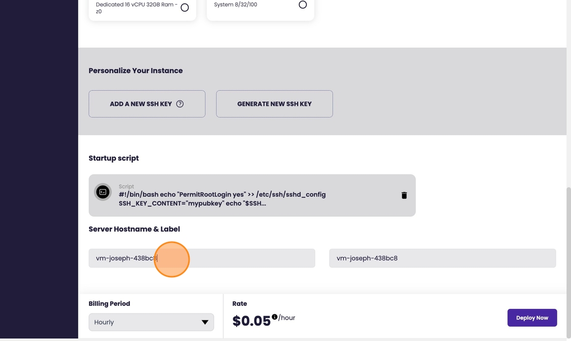 11.) Give the instance a customized hostname and label.