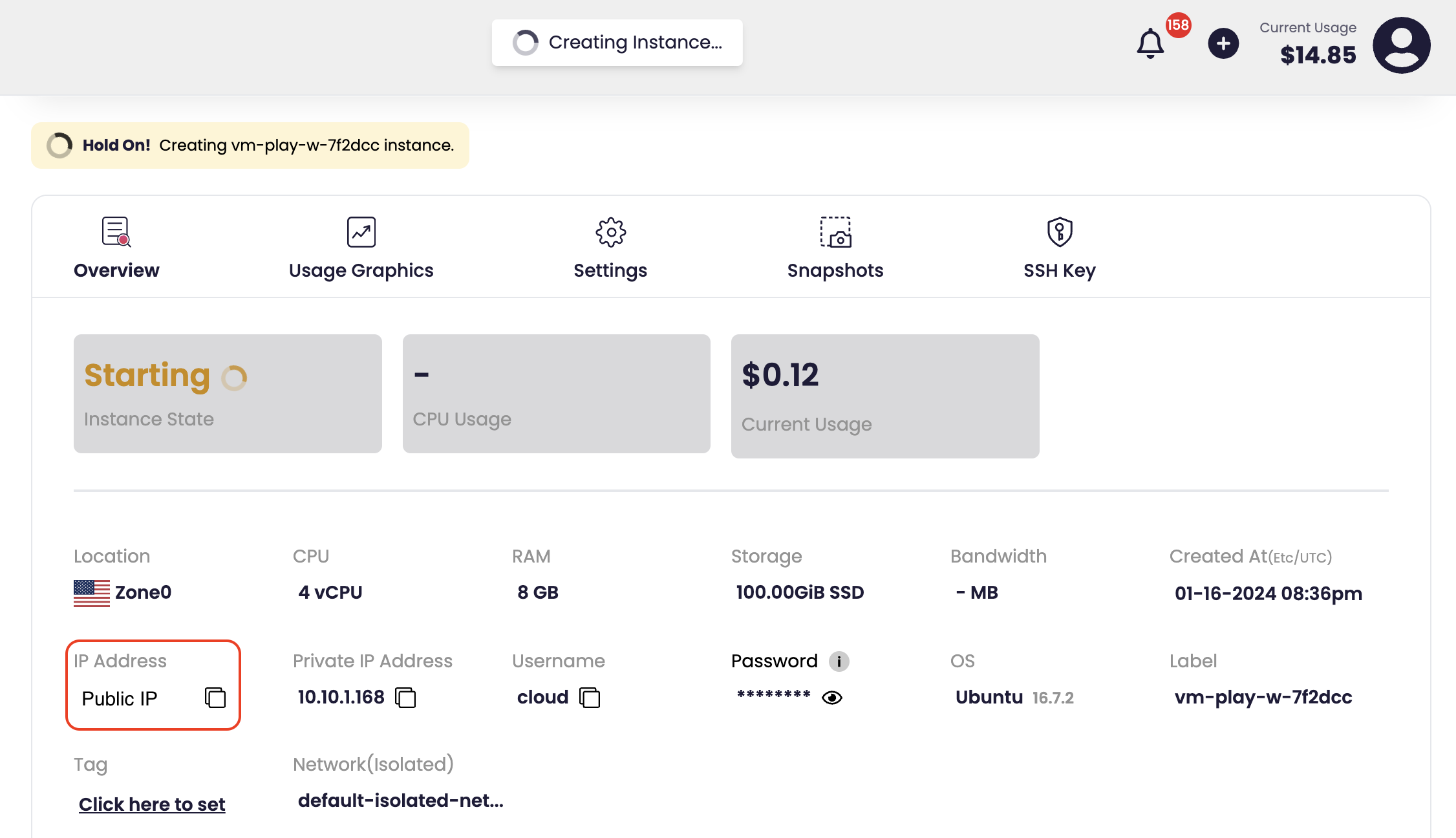 - Click on "Create an Instance" select your "Project" and click "Proceed"