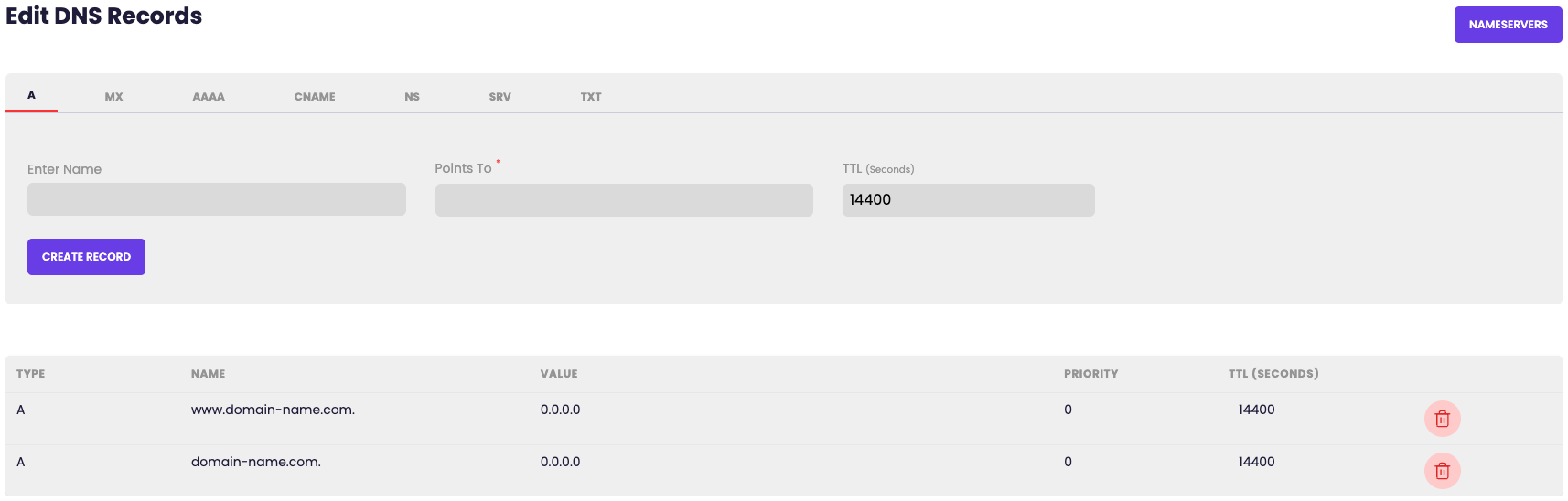 - Note: DNS providers have different methods of doing this, please contact your DNS provider if you are having any issues