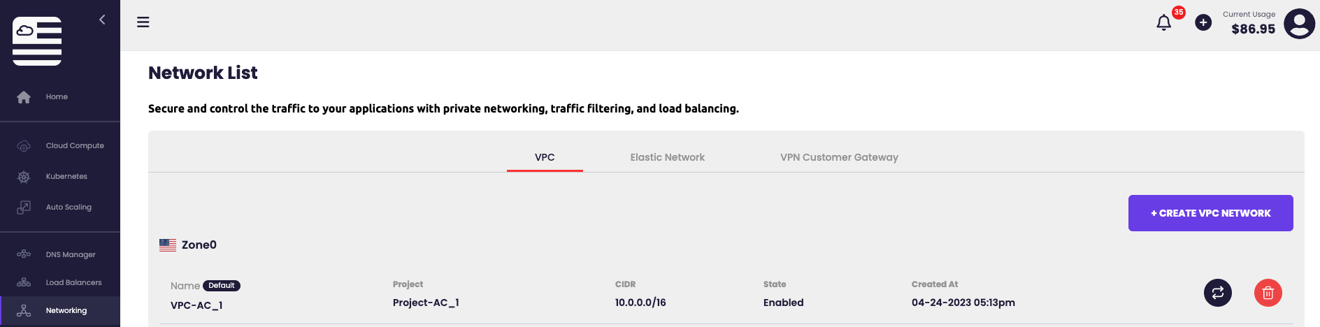 - Select an already created VPC. If no VPC is present Click Here to create a VPC.