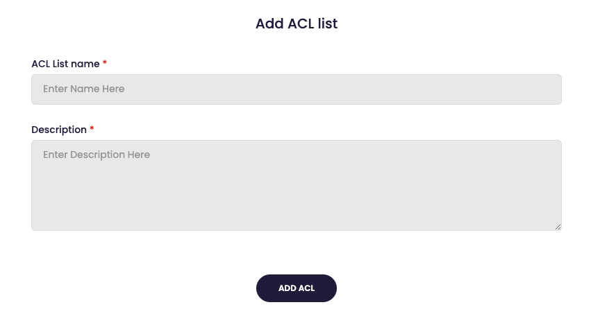 - Click on 'ADD ACL' to create the new ACL.