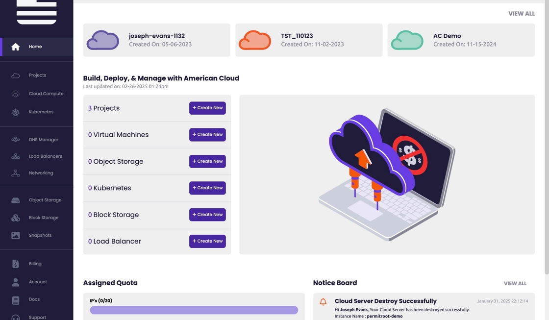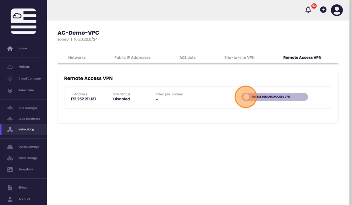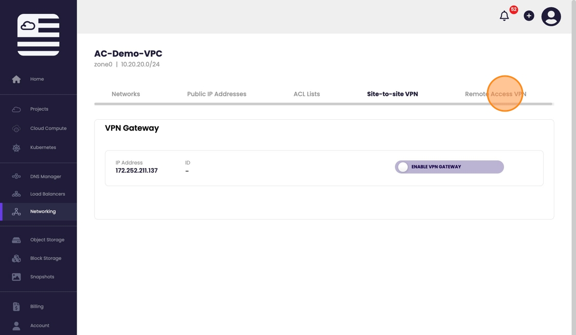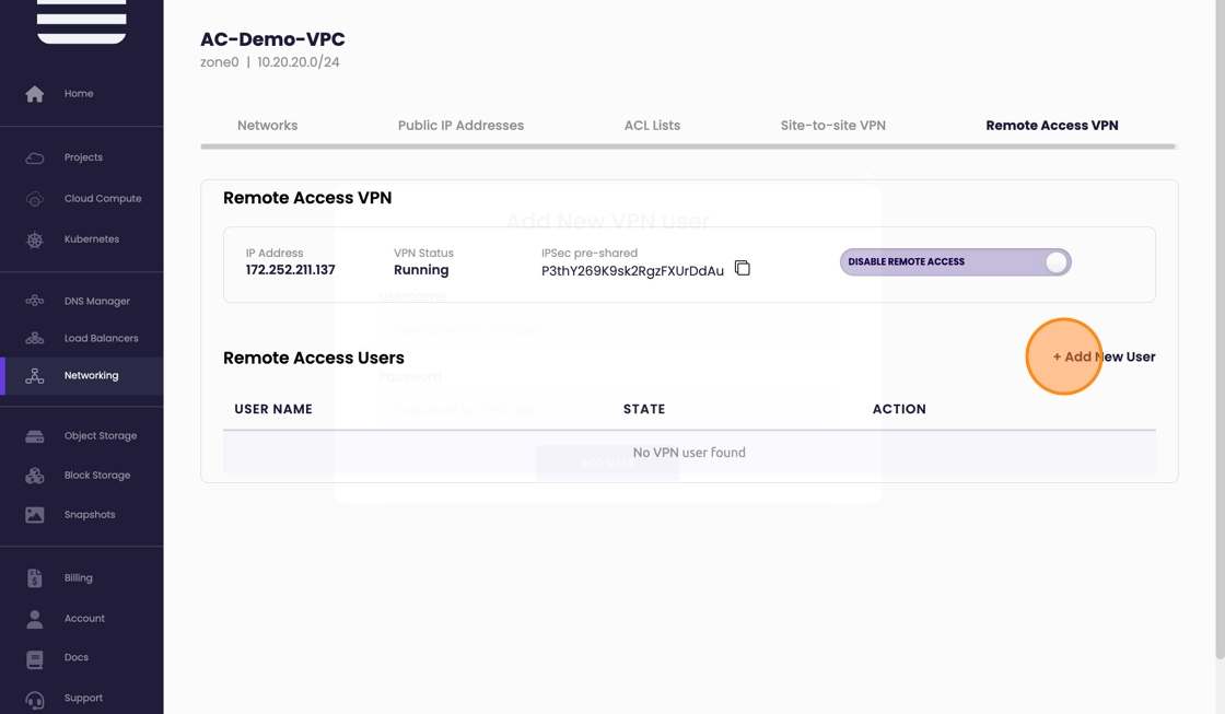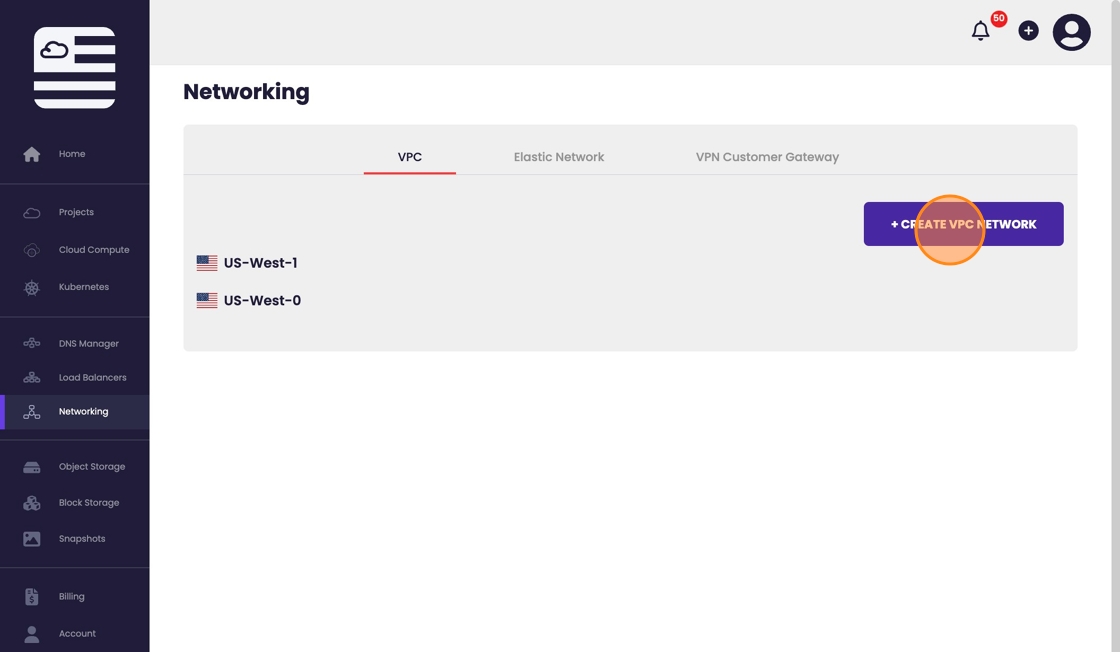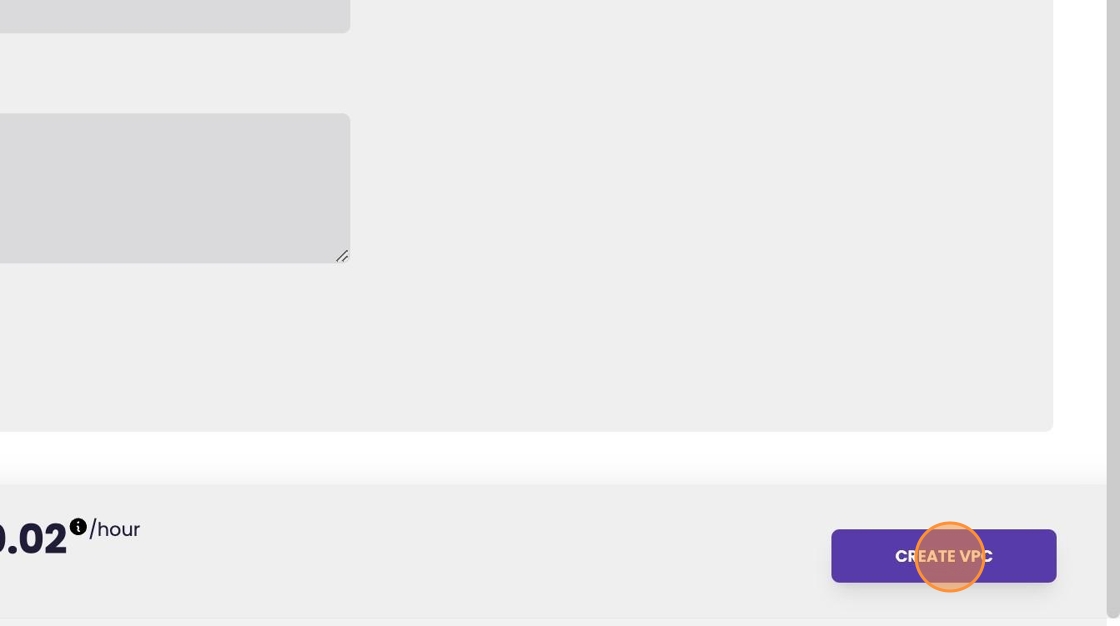 - "Hold on! Creating VPC network. Might take a few minutes..." will appear top of the screen while the VPC is being created.