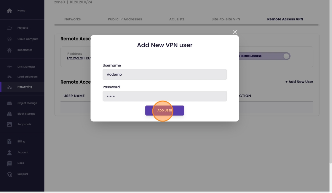 - Provide a Username and Password for the user. Then store in a secure location for sharing. Select "Add User"