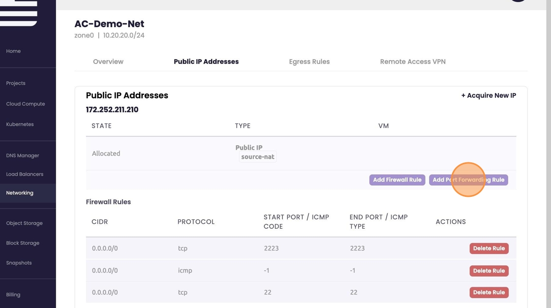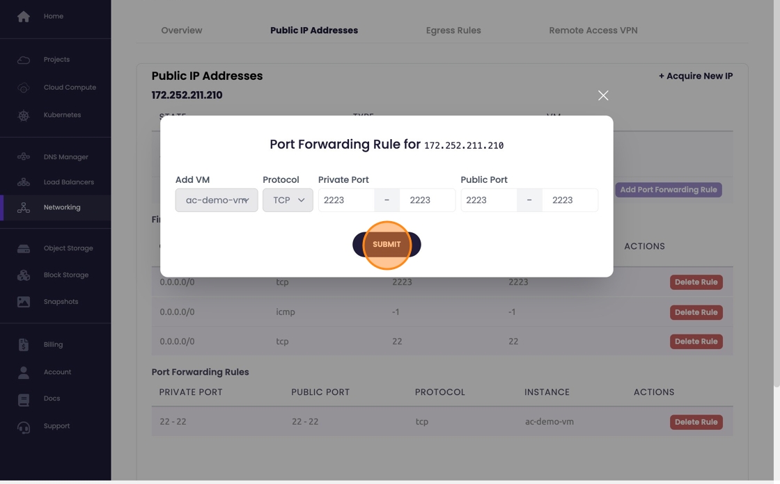 Create Port Forwarding Rule