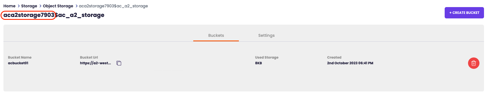 YOUR_TENANT_ID is needed to use the URL to view and access the Object Storge in a browser, https://a2-west.americancloud.com/aca2storage7903:acbucket01.
