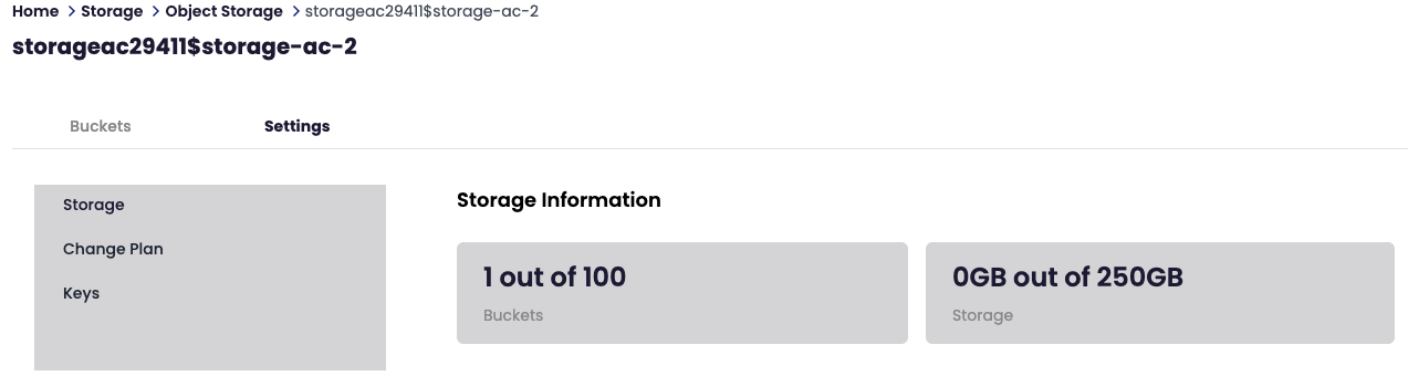 American Cloud offers a standard 1000 buckets. However, size volume is based off needs of the customer. Standard sizes are 250GB, 500GB, 1TB, 1.5TB, 2TB, 2.5TB, and 5TB. Select the desired size based off needs