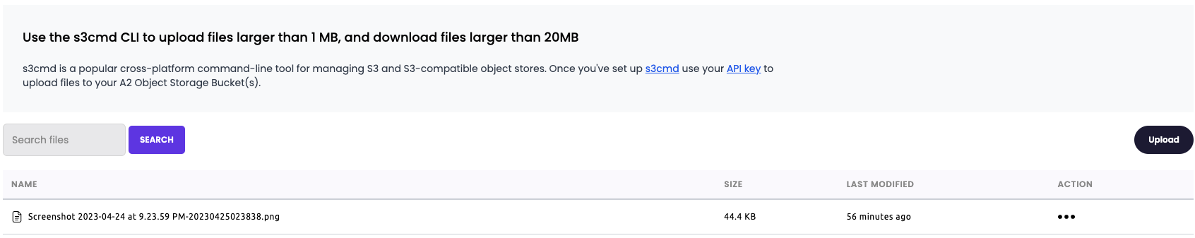 Within the Action Pane, on the far right, are several options per file. Permissions, Download, Rename, Delete, Unsigned URL, and Pre-Signed URL