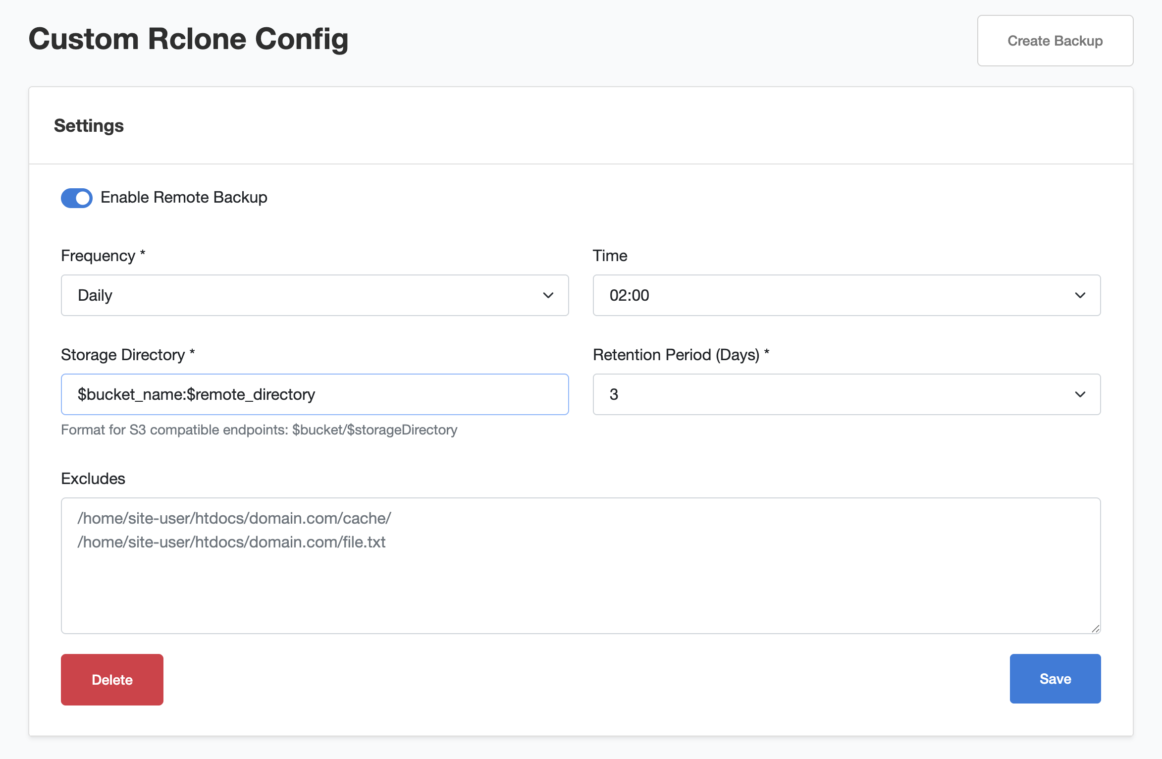 Note: The name must be [remote] for CloudPanel to detect the configuration: