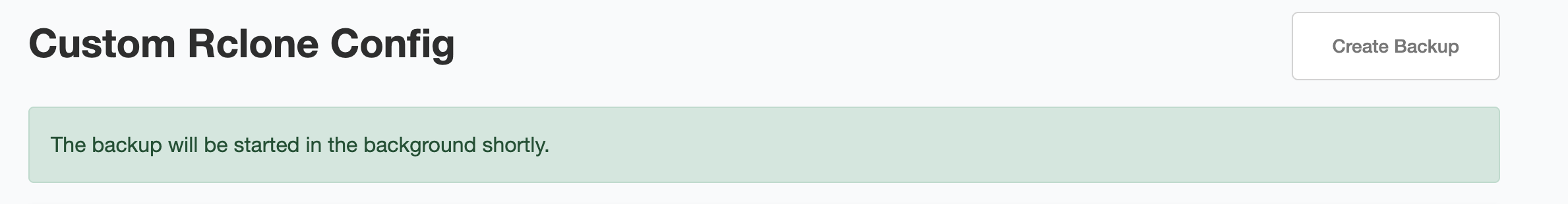 To create a manual backup, simply click on "Create Backup" as shown in the screenshot. The backup will be started in the background.