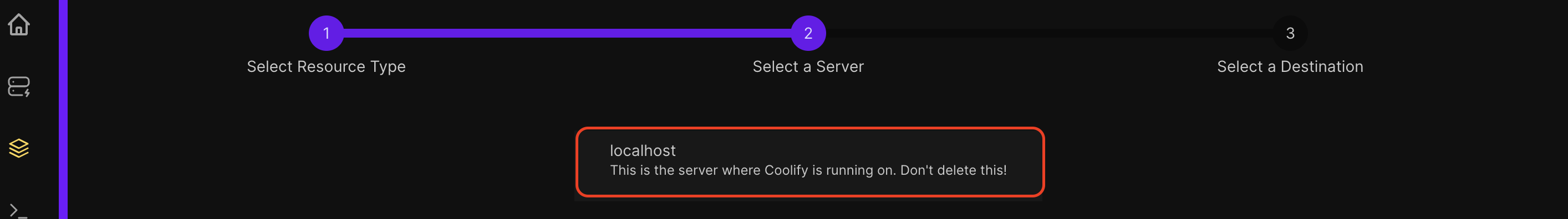 - Select the desired server for the resource.